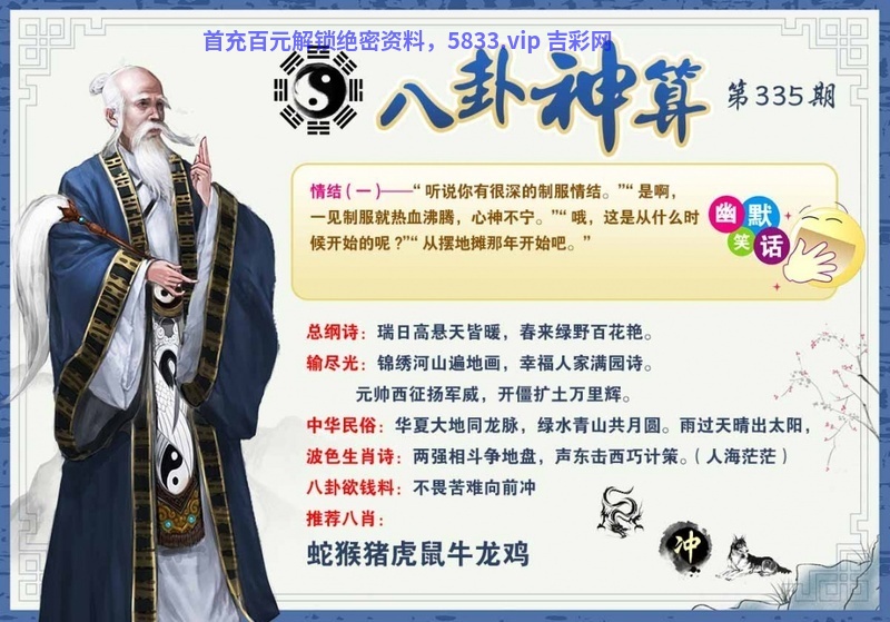 | 335期:八肖 | 虎狗龙猪兔羊蛇马 | 狗44中 |